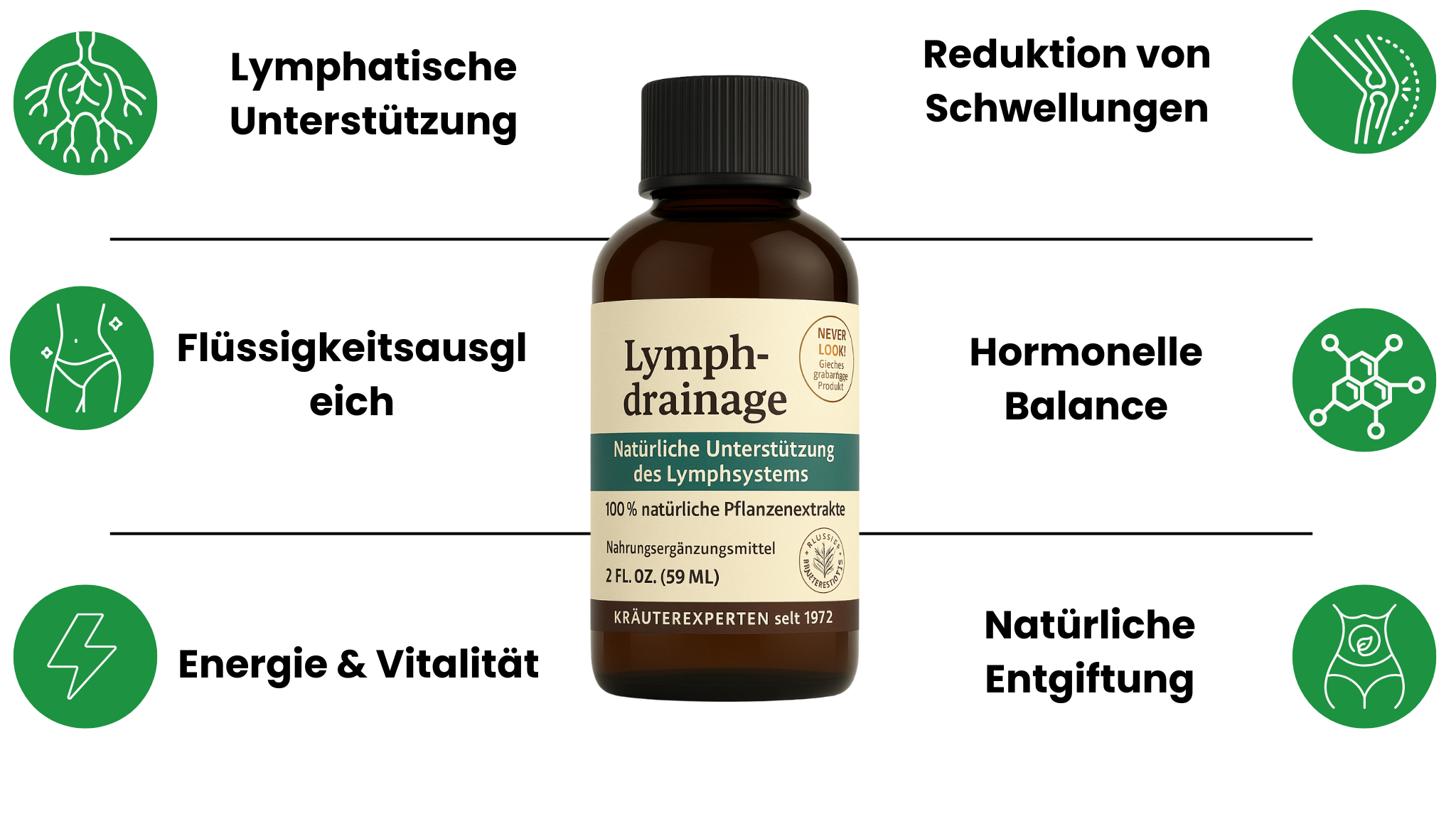 Unsere flüssige 100 % pflanzliche Formel wurde entwickelt, um die Lymphzirkulation sanft wieder in Gang zu bringen – dort, wo Cremes oder Tees nicht wirken.
